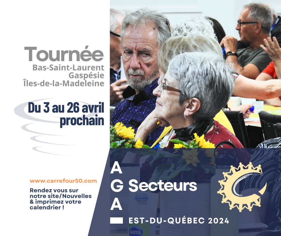 Le CARREFOUR 50 + DU QUÉBEC regroupe 138 clubs affiliés. L'ensemble de nos clubs comptent plus de 18 000 membres qui se rassemblent lors de nombreuses activités sur le territoire du Bas-Saint-Laurent, de la Gaspésie et des Îles-de-la-Madeleine. L'Assemblée générale annuelle de notre fédération est une occasion unique de partage entre nos membres.